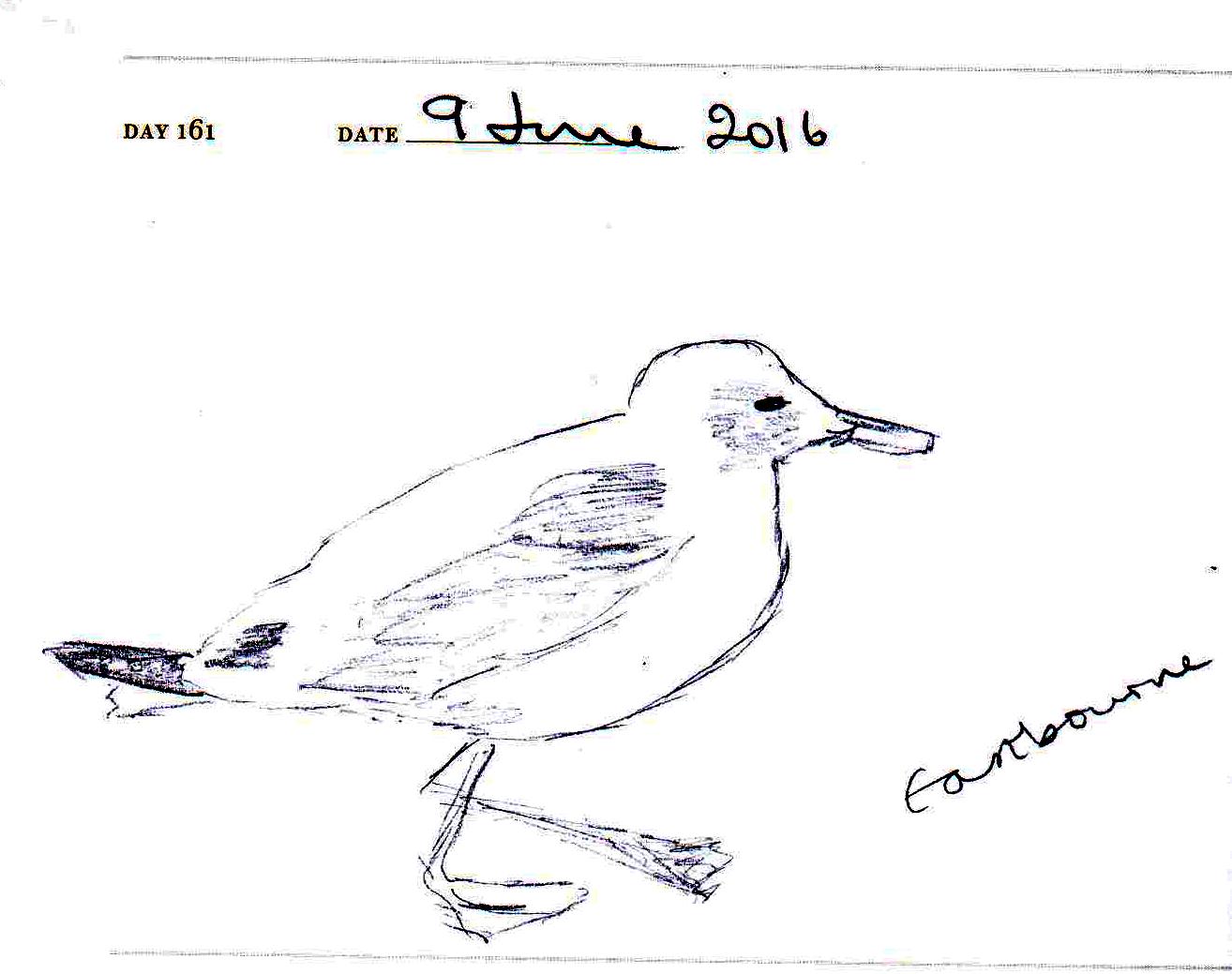 I travelled to Eastbourne three times to conduct five senior leader appraisals. One visit took place on 9 June, and walking to the restaurant where I had a meal in the evening a seagull crossed my path. I took a quick snap on my phone and sketched it from the photograph. (I sketch quickly, but not that quickly…)