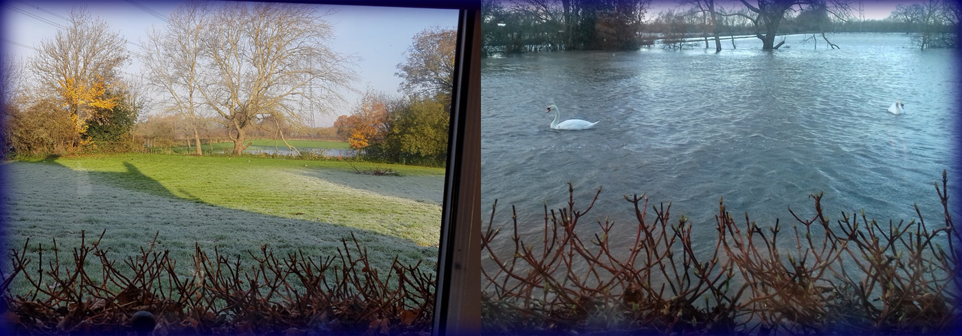 Photo credit: John Berry. The view from our kitchen window in November 2019, and the same view in February 2020. Play ‘Spot the Difference’?