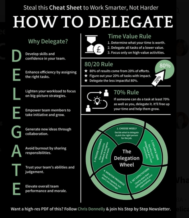 - Don’t simply delegate things you don’t want to do, either because you find them dull, or difficult